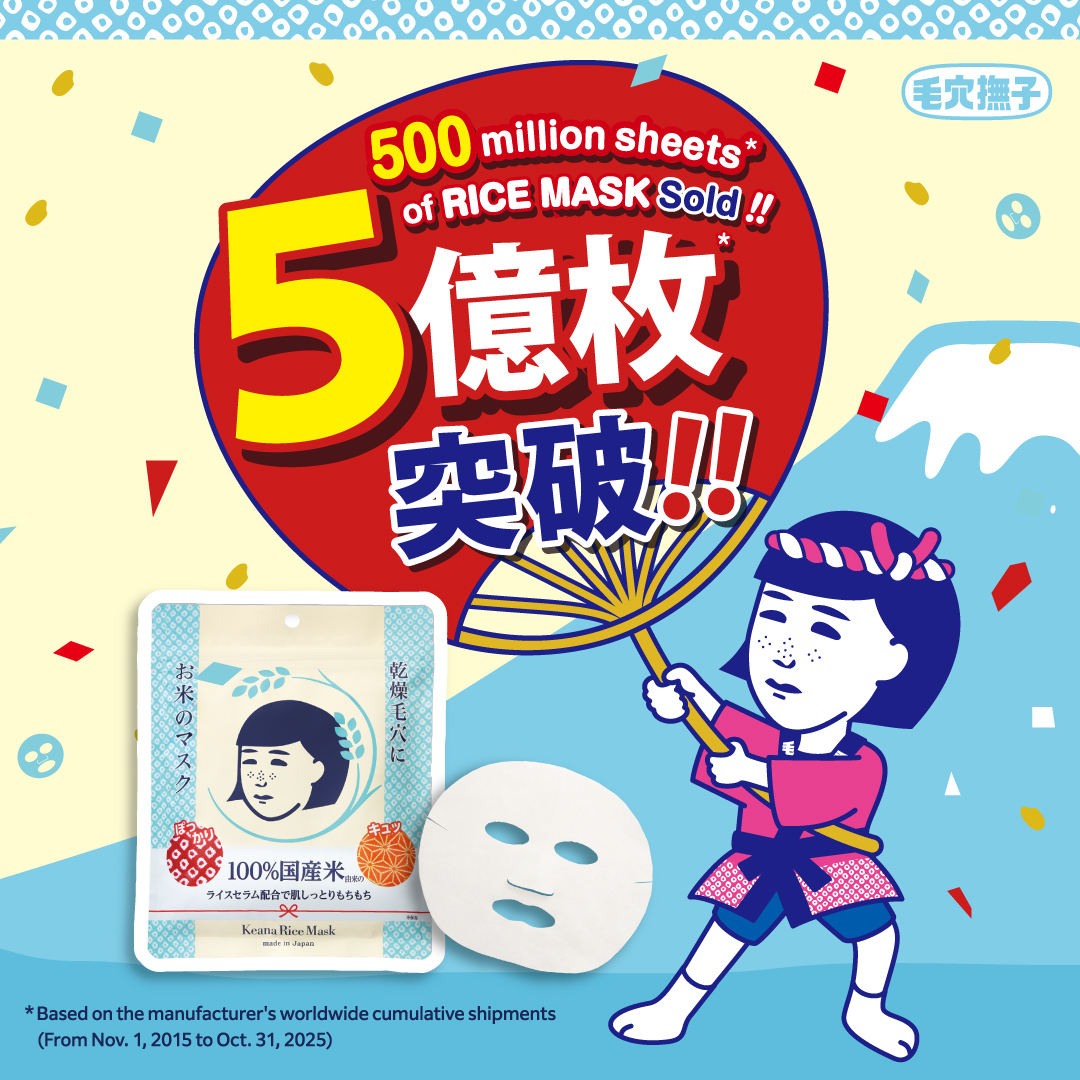 ARIGATO to all of you! NADESHIKO Rice Mask has reached 500 million sheets*1 sold🎉🎊🍚